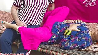 Lesbian teen stepdaughter scissoring with big tits stepmom